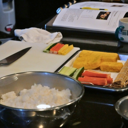 - สอนการ เตรียมวัตถุดิบสำหรับทำซูชิ เช่น การทำไข่ม้วนญี่ปุ่น การต้มเห็ดหวาน และการเตรียมเครื่องเคียงอื่น ๆ