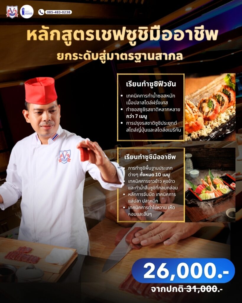 เรียนเชฟซูชิสอนตั้งแต่พื้นฐานไปจนถึงมืออาชีพ